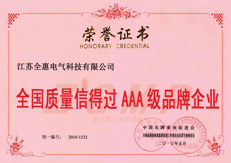 全國質(zhì)量信得過AAA級品牌企業(yè)